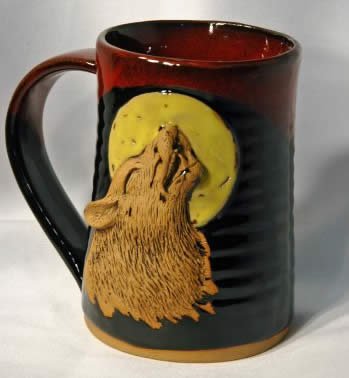 The perfect gift for the wildlife wold lover! A howling wolf against the yellow moon. You can almost hear him howl. The background is a Red and Black glaze.